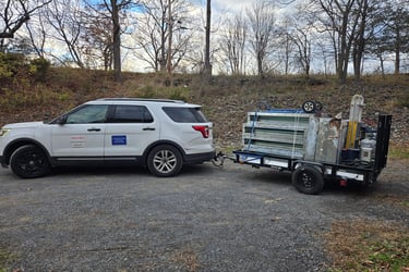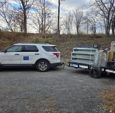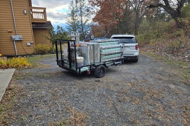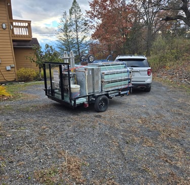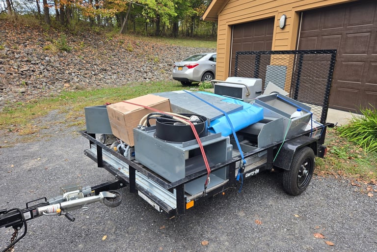 Photos above show the trailer is moving an entire Endless Pool from one location to another. It requires the trailer doing it in two trips.